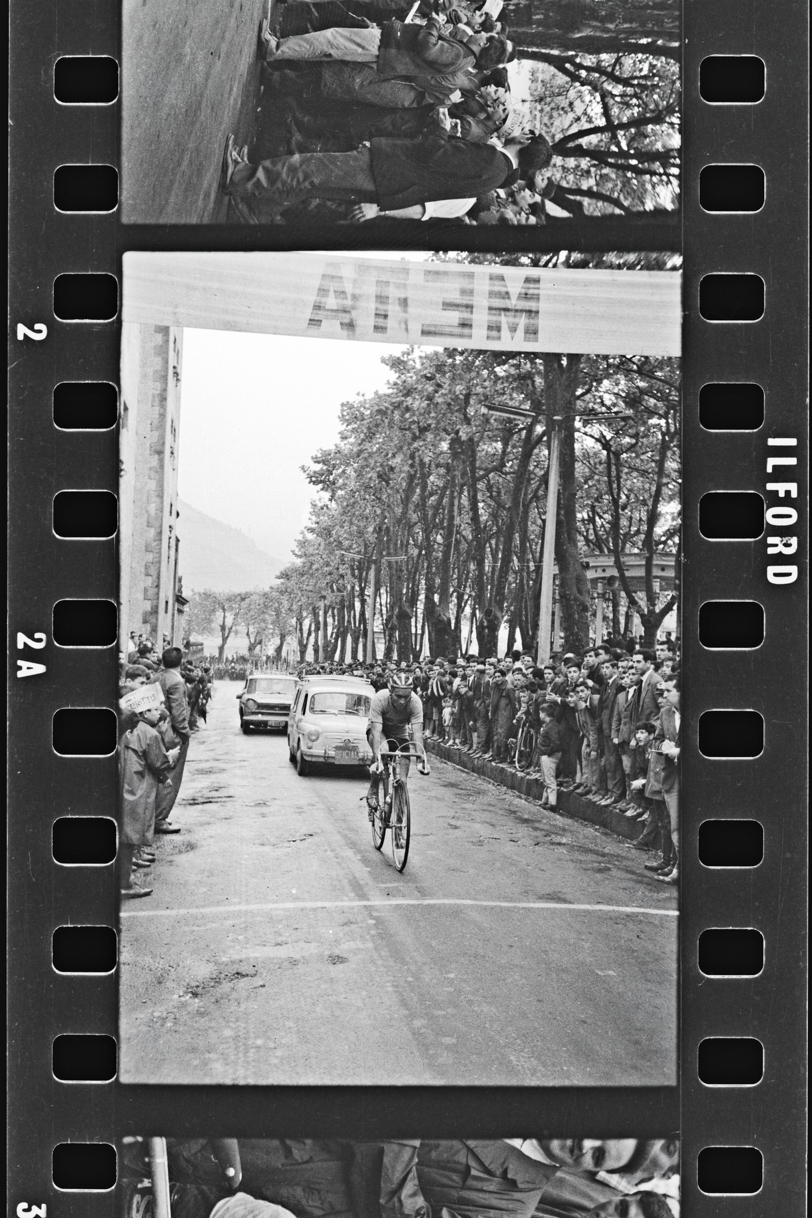 Txirrindularia helmuga sartzen, atzetik bi kotxe
