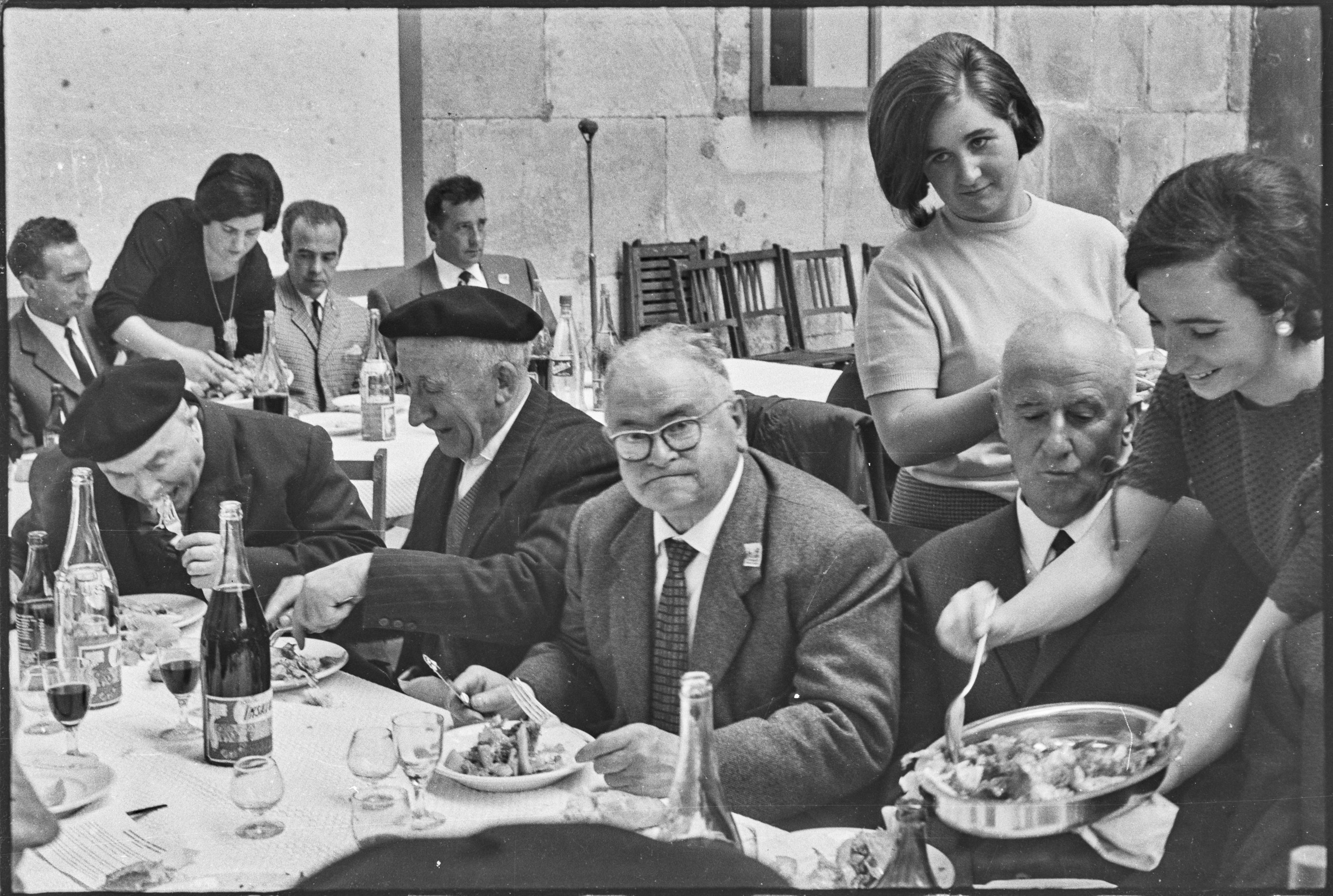Bazkaria Udal pilotalekuan. Jendea bazkaltzen.
