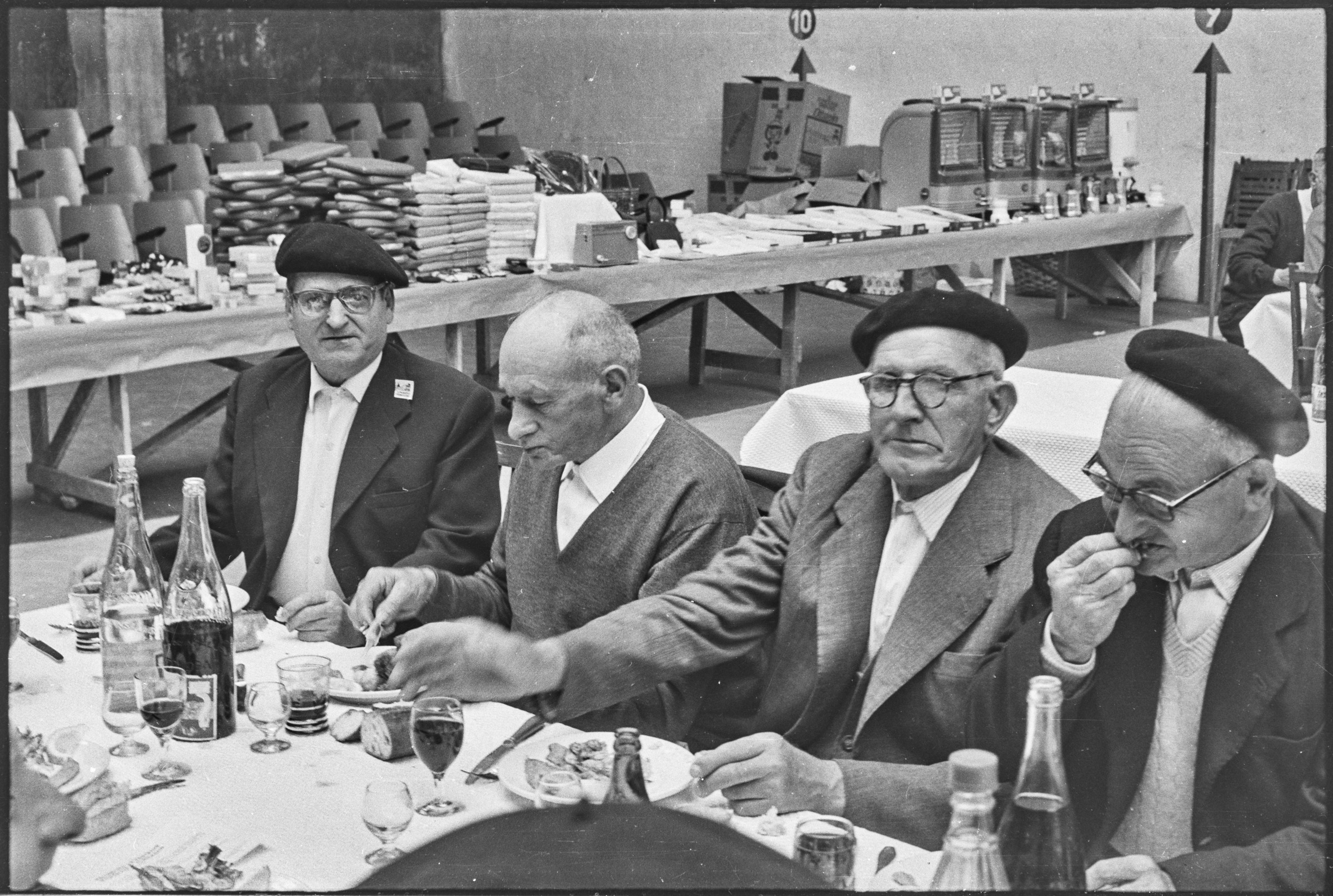Bazkaria Udal pilotalekuan. Jendea bazkaltzen.